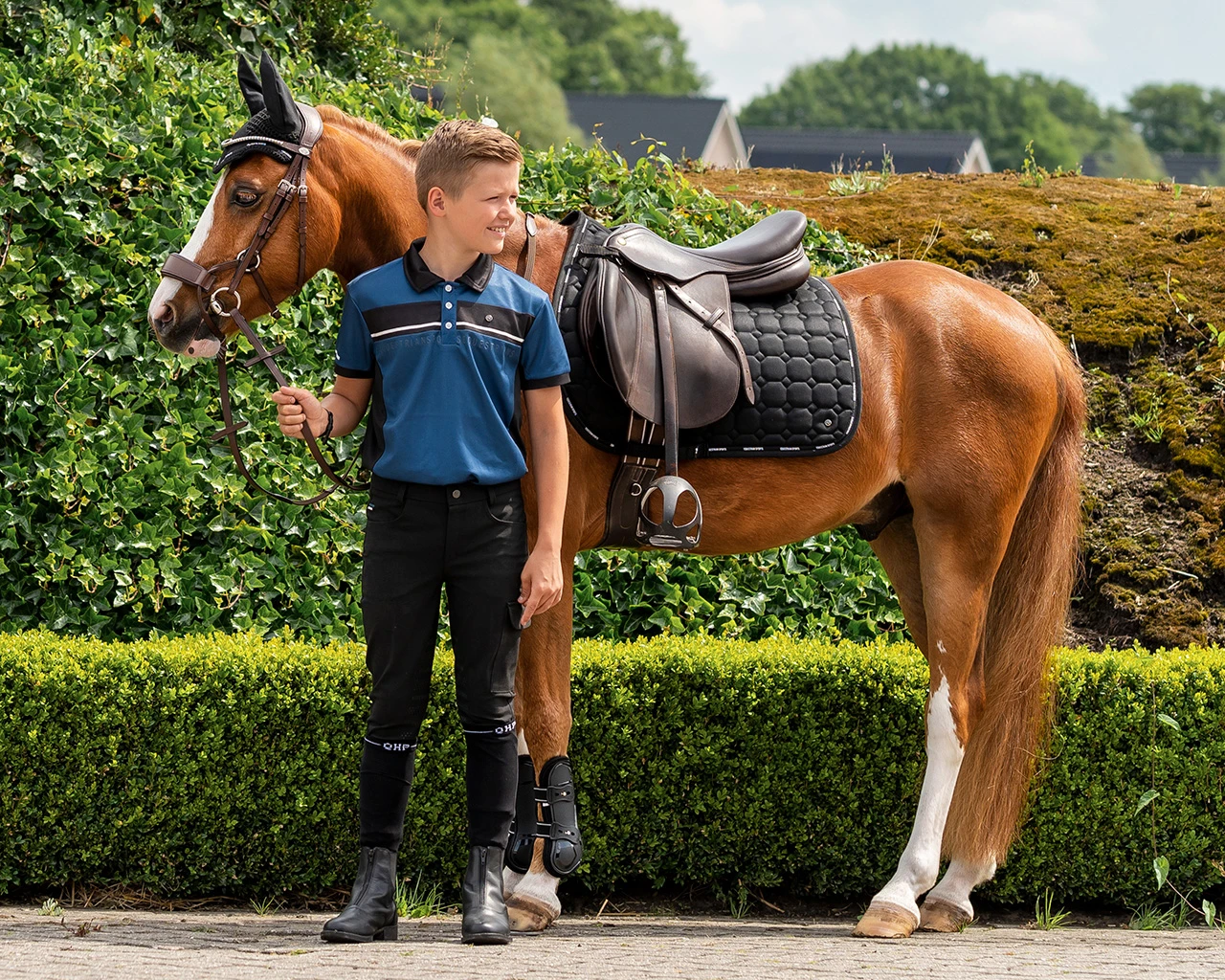 - tweekleurig design met contrasterende Equestrian Sports tekst