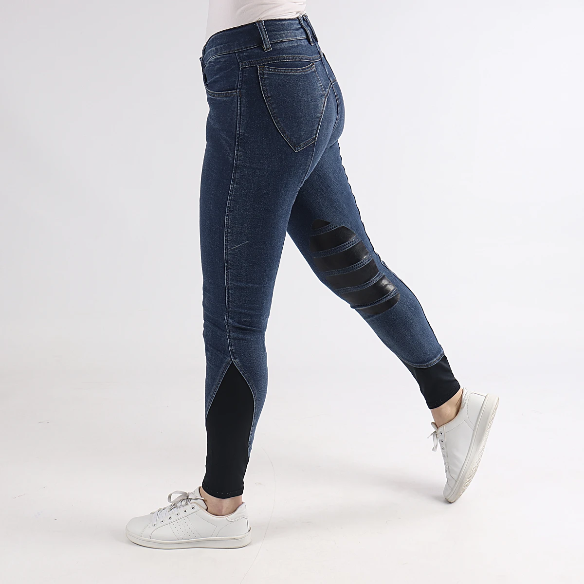 - jeans rijbroek met speelse siliconen print bij de knieën